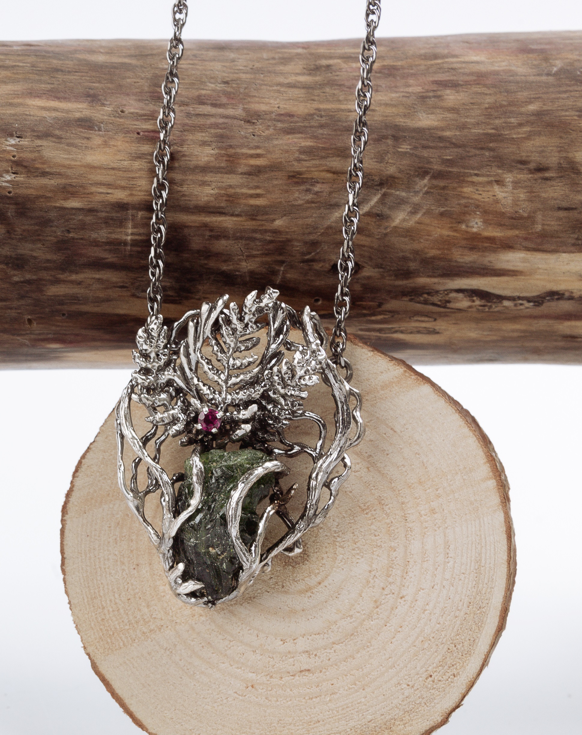 Колье "Тайбола" | Бр ,Хромдиопсид (сибирлит) ,Родолит |