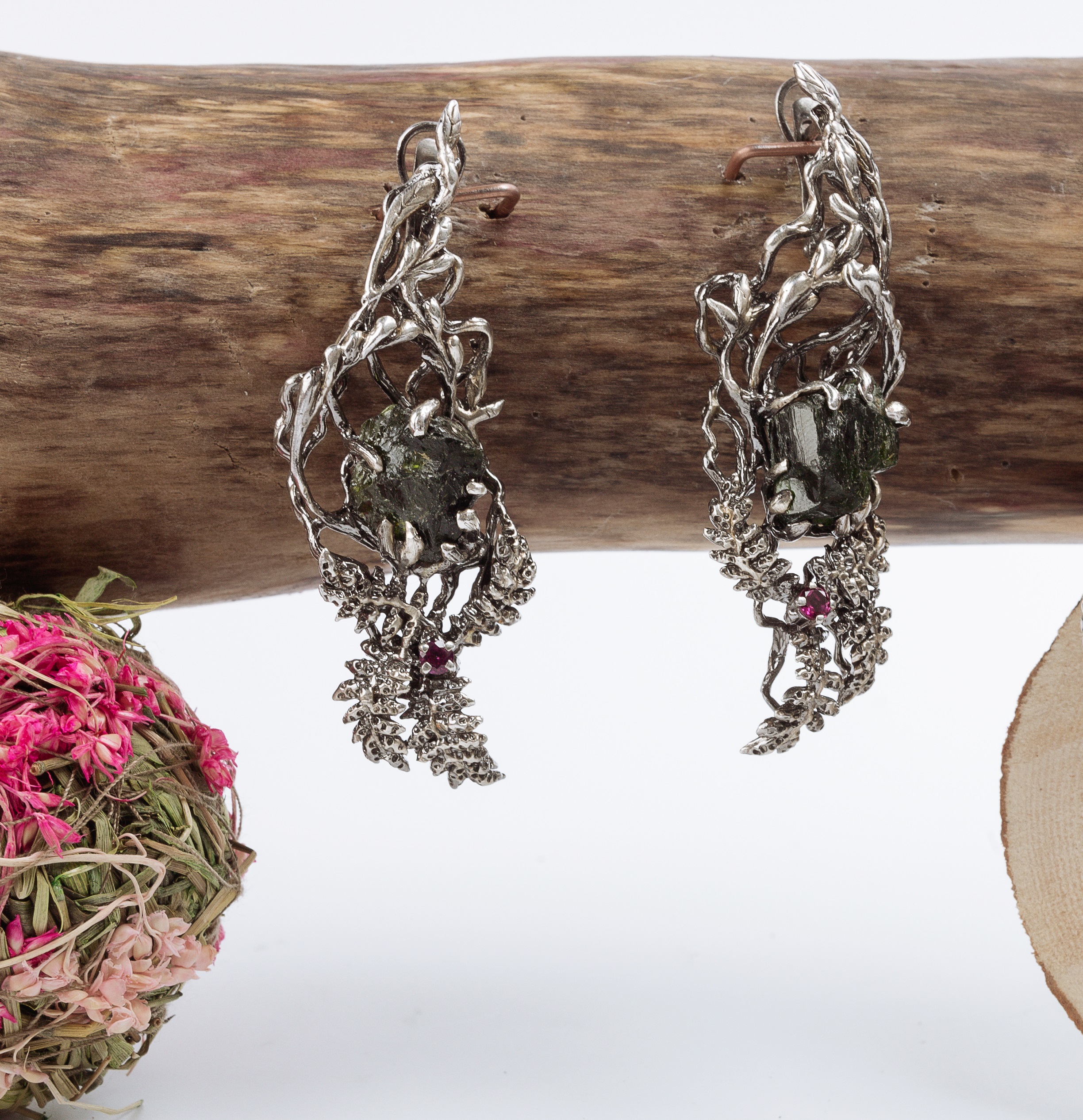 Серьги "Тайбола" | Бр ,Хромдиопсид (сибирлит) ,Родолит |